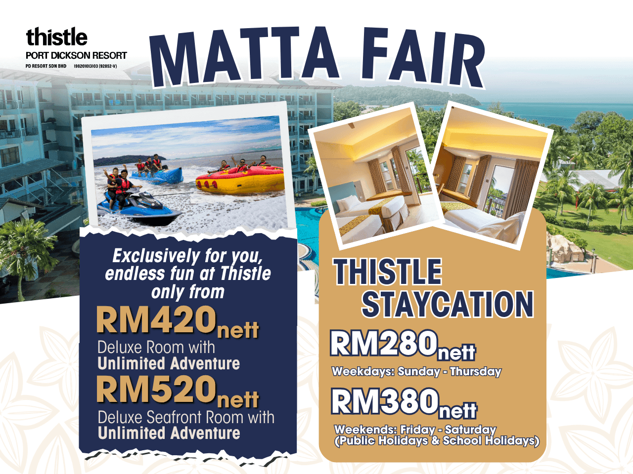 A little more time. A little more adventure. Our MATTA Fair offers have been extended until 25 April 2026, inviting you to experience the charm of Thistle Port Dickson Resort for less.